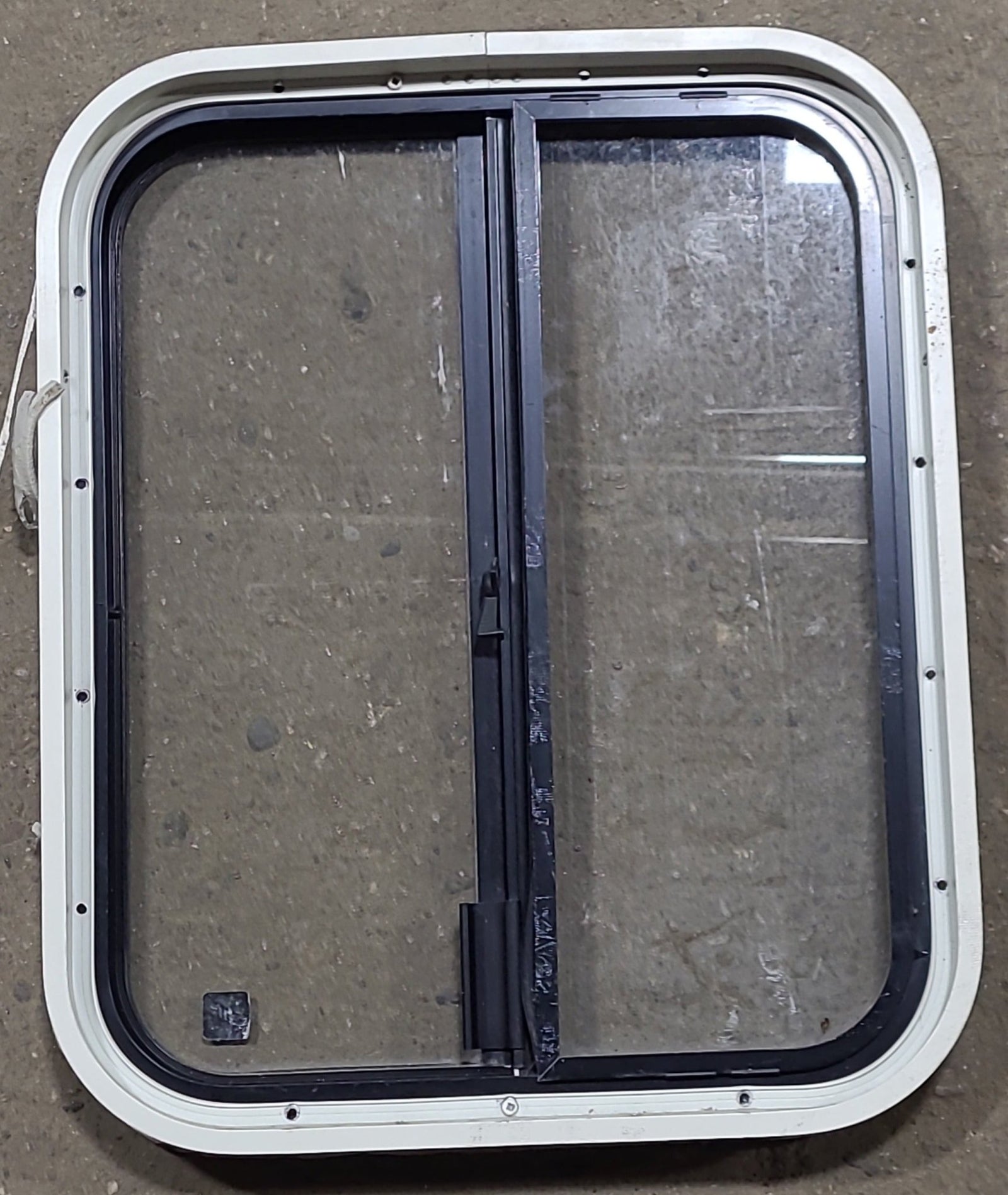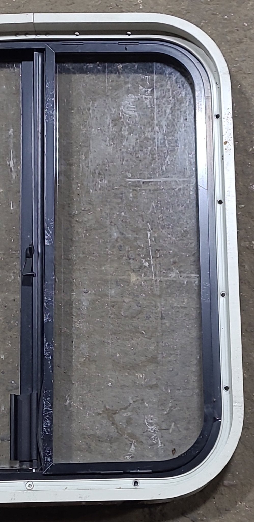 NOTES: Good used condition. This window is the type that gets "sandwiched" between the outer frame and inner frame, being screwed on from the inside. Seals are in good condition. Inner frame included. No screen. Light tint. Any hardware shown is included and in good working condition. See images.